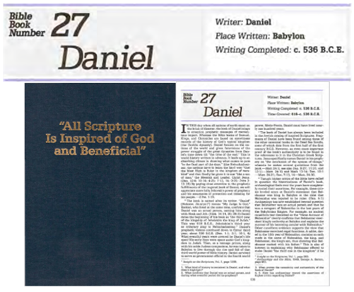 Skribent: Daniel Platsen där den skrevs: Babylon Boken fullbordad: omkr. 536 f.v.t.” – ”Hela Skriften är inspirerad av Gud och nyttig” [1995], sid. 138 (sve.)