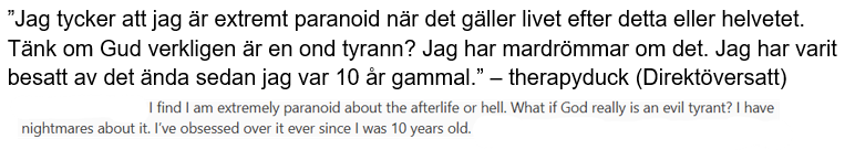 Följande Reddit-kommentarer visar den fruktansvärda effekten på vissa människor som uppfostrats med en lära om ett brinnande helvete.