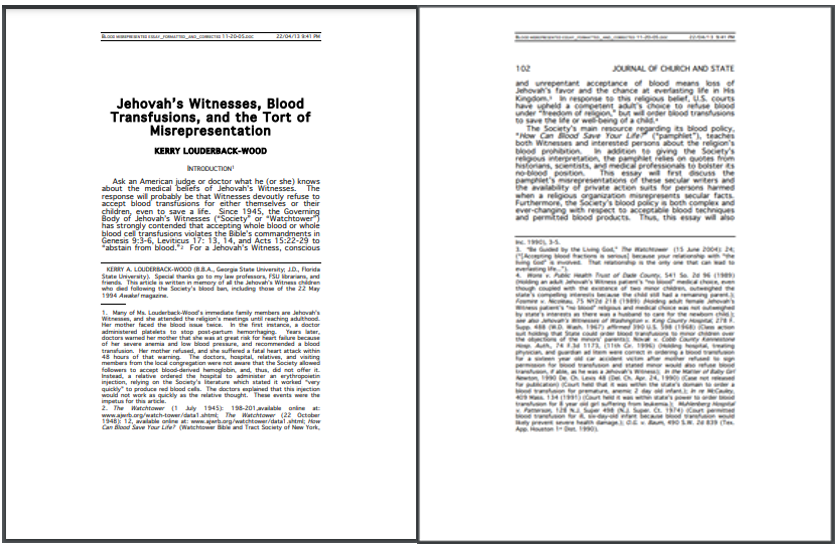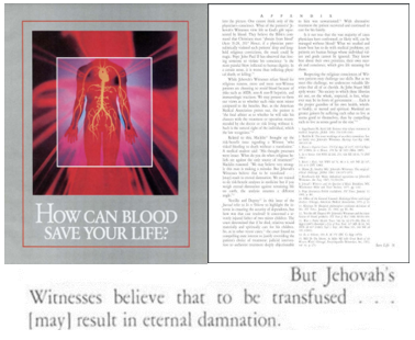 Men blod anses ibland vara nödvändigt för att kunna överleva och även om ett vittne kan ifrågasätta den medicinska broderlighetens etik,3 bör de inte bortse från att en läkare har ekonomiska incitament för att agera på ett sätt som ger patienterna deras bästa chans att överleva. Ökande kostnader för rättegångsförsäkringar säkerställer att läkare ger blod eftersom de tror att det ökar en persons chans att överleva. Att tycka något annat är baserat på felaktig information som presenteras i Sällskapet Vakttornets publikationer (vilket demonstreras i “Jehovah’s Witnesses, Blood Transfusions, and the Tort of Misrepresentation” av Kerry Louderback-Wood).