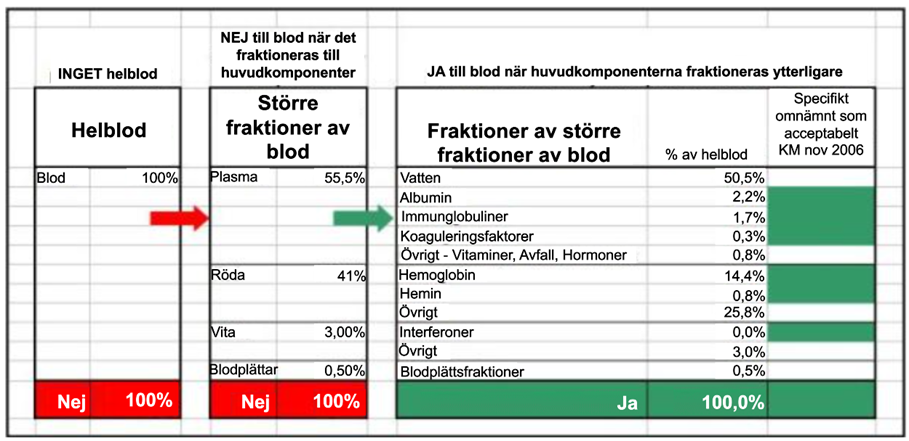 Däremot får Jehovas vittnen ta emot komponenter av donerat blod när blodet fördelats till blodfraktioner.