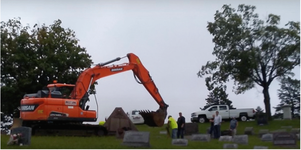“VID GRAVPLATSEN På måndagen förrättades en inbjudan på omkring 150 pers. av broder Bohnet till broder Russells grav. På en sluttning, sluttandes mot södern, höll vi varandra i hand runt graven och sjöng: ‘Signat vare bandet som binder våra hjärtan i kristen kärlek; brödraskapet i befryndade sinnens slag lik den där ovan.’ Vår sista långvariga blick mot skådeplatsen återkallade i minnet det fridfulla uppträdandet från vår pastor, som nu hava ‘passerat bortom slöjan.’ Vi kom att tänka på broder Rutherfords ord: ‘Jag gläder mig över att detta fängelseskådespel var reserverat för oss i stället för vår käre broder Russell.’ Vi besökte marmorverkstaden och åskådade arbetarna sakta men säkert mejsla och hugga ut monumentet som skulle uppföras till ett minnesmärke för Sällskapet. Sällskapet Vakttornets begravningsplats på Rosemont United Cemeteries, fem mil rakt norr om Pittsburgh City, rymmer vidsträckta områden för gravplatser åt alla medlemmarna i Betelfamiljen och för vallfärdarna och deras hustrur – allt som allt fler än 275 vuxengravar. I mitten av Betelgravplatsen kommer det diagonalt uppföras det pyramidformade monumentet såsom det utformats av broder Bohnet, och som godtagits av broder Russell som det mest passande emblemet åt ett bestående monument på Sällskapets begravningsplats. Storleken på denna struktur är nio fot (2,74 meter) tvärs över sockeln, och dess toppsten ligger exakt sju fot (2,13 meter) ovanför markytan.” – Souvenir Report of the Bible Students Convention, Pittsburgh, PA., 1919 Jan – 2 – 5 p. 7 (Minnesgåvorapport för Bibelforskarnas Sammankomst, Pittsburgh, Pennsylvania, 1919, 2 – 5 januari, sidan 7 (eng.)) (Utdraget är efter bästa förmåga direktöversatt)