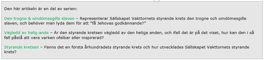 Den här artikeln skrevs i juli månad 2006, senaste uppdateringen kom i mars månad år 2023. Översattes från engelska till svenska i februari månad 2022 och mars 2023. Länk till engelska källartikeln är: https://jwfacts.com/watchtower/faithful-discreet-slave.php
