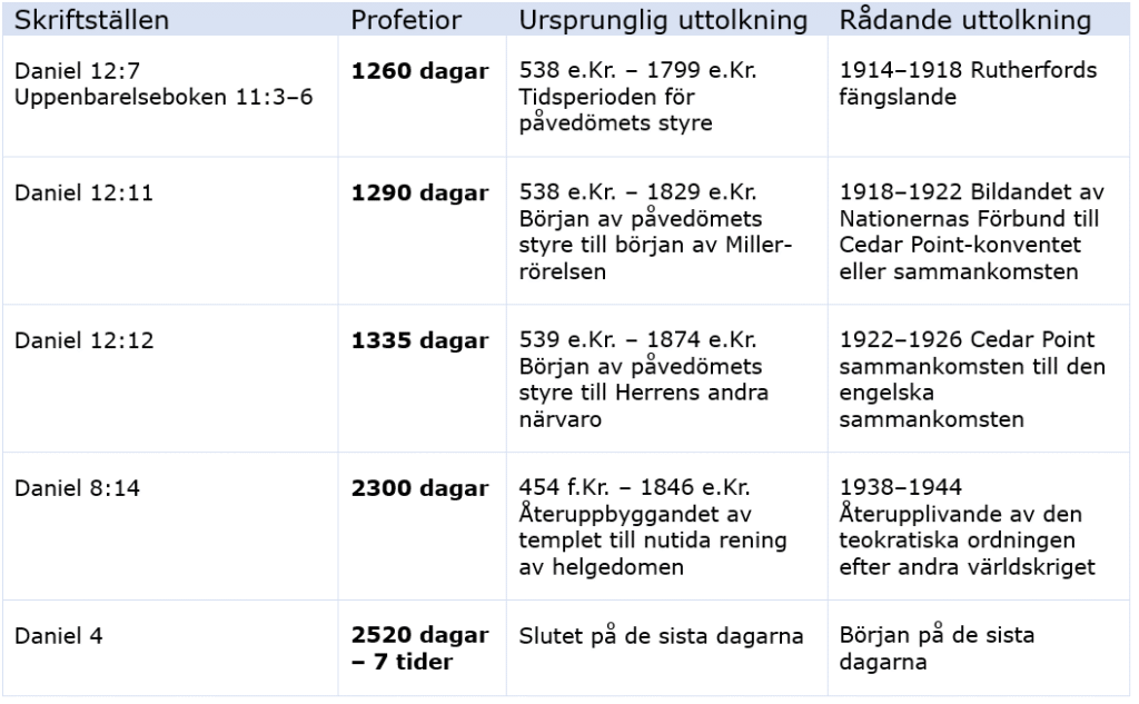 Under 1800-talet lärde Russell ut att de 1260, 1290 och 1335 dagarna alla startade i början på det påvliga styret år 539 e.Kr. Eftersom 539, 1799 och 1874 inte längre ansågs relevanta har förklaringen till dessa profetior också förändrats.