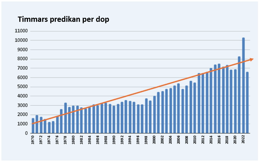 Det krävs över 7 000 timmars predikande för ett enda dop, och de flesta av dessa är barn som föds in i religionen. De miljarder timmars predikande som Jehovas vittnen rapporterar varje år resulterar bara i ett litet antal nya konvertiter, särskilt sedan 2000-talet.