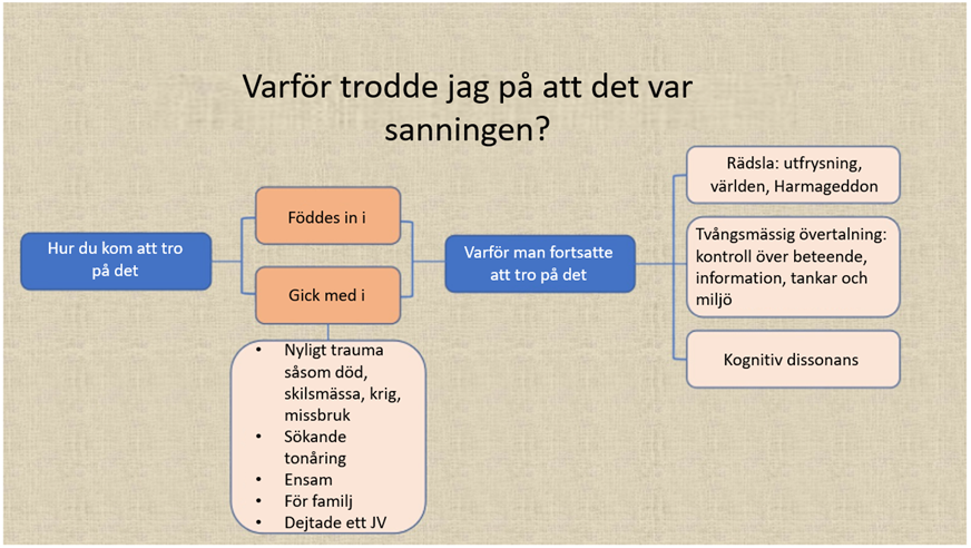 När man väl insett att Jehovas vittnen inte lär ut sanningen är det vanligt att man har svårt att förstå hur man någonsin kunde tro på att det var sanningen. Mycket av det man trodde på verkar löjligt, skadligt och till och med omoraliskt. Att förstå varför Jehovas vittnen tror att det är sanningen, precis som man en gång gjorde, är ett viktigt steg för att kunna gå vidare.