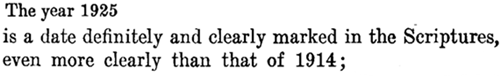 “Året 1925 är ett definitivt och tydligt datum i Bibeln, ännu tydligare än 1914.” [13]