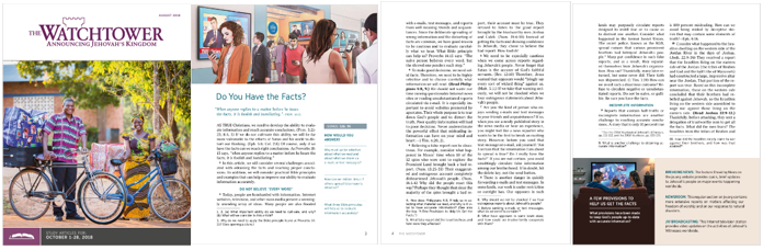 VI SOM är vittnen måste lära oss att sålla bland den information vi får och kunna dra rätt slutsatser. … Och det enda sättet att kunna dra rätta slutsatser är naturligtvis att man har alla fakta. … Men många gånger sprids felaktig information och halvsanningar, så det är klokt att vara lite avvaktande och försöka bedöma om det vi hör är sant eller inte. … Det kan vara svårt att dra rätt slutsats om man får information som bara är delvis sann eller innehåller halvsanningar. En berättelse som är 10 procent sann är 100 procent vilseledande.” – Vakttornet, Studieupplagan, augusti 2018, sid. 3, 4, 5 (eng. & sve.)