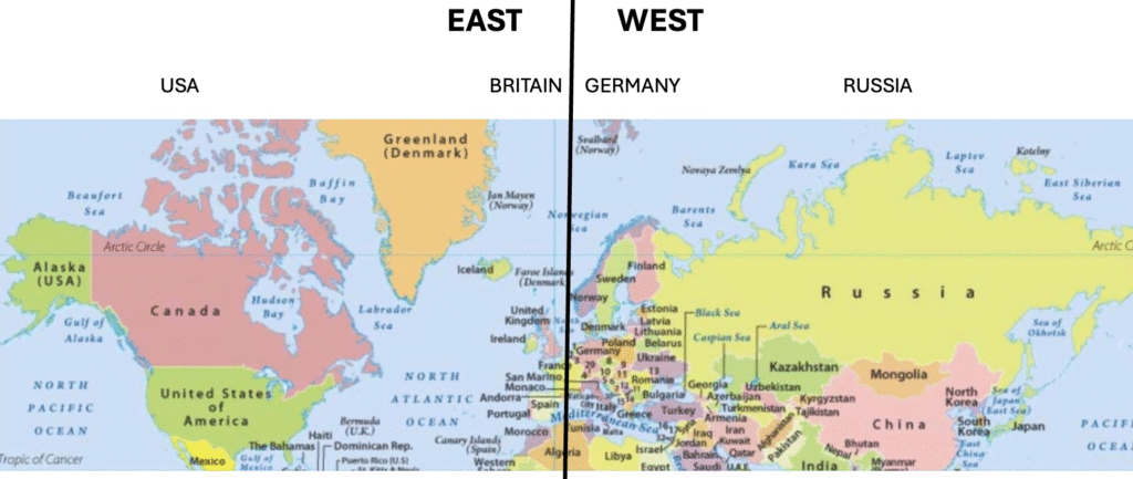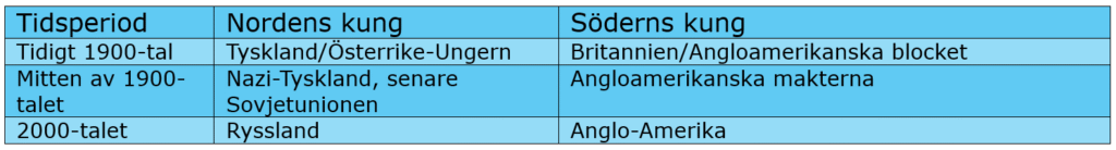 Daniel använde “norr” och “söder” eftersom kungadömena tydligt låg norr och söder om Israel. Sällskapet Vakttornets val av Storbritannien/Tyskland och USA/Ryssland är inte norr och söder, utan öst och väst. Storbritannien/Tyskland är nästan identiska i latitud liksom USA/Ryssland.