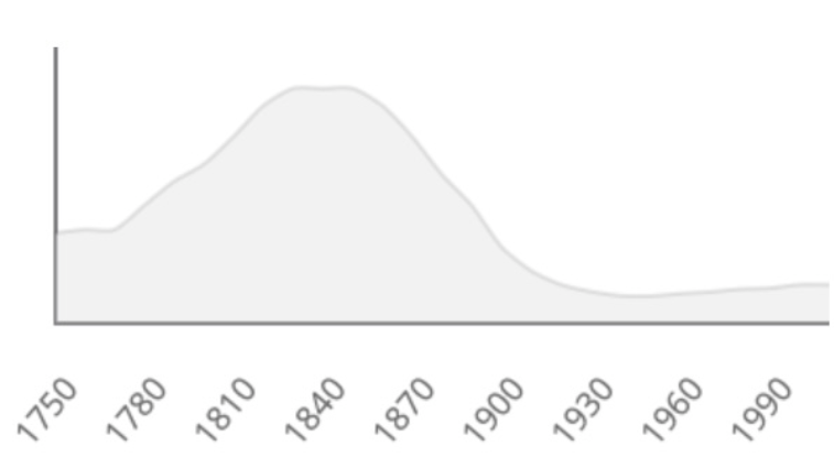 Oxfordordboken har ett diagram som tydligt visar hur användningen av termen motbild fick framträdande plats under 1800-talet.