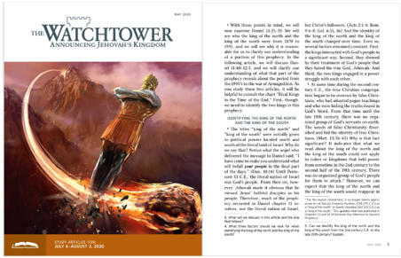 År 2020 publicerade Sällskapet Vakttornet en artikelserie med en uppdaterad förklaring. Dessa artiklar beskrev historien bakom Sällskapet Vakttornets tolkningar som spände sig över Tyskland och Sovjetunionen.