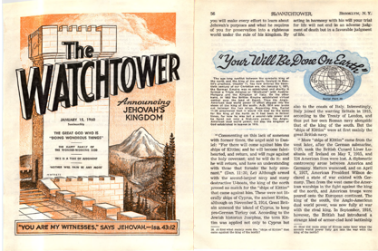 ”Av alla de så kallade kristna grupperna efter första världskriget var det endast Jehovas vakna vittnen som var beredda att ta itu med det väldiga, hela världen omfattande uppdraget att predika det slutliga vittnesbördet. Träffande sade Jesus: ”Det är den som har uthärdat intill slutet som skall bliva frälst. Och dessa goda nyheter om riket skola bliva predikade på hela den bebodda jorden till ett vittnesbörd för alla nationer; och därpå skall det fullbordade slutet komma.” — Matt. 24:13, 14, NW.