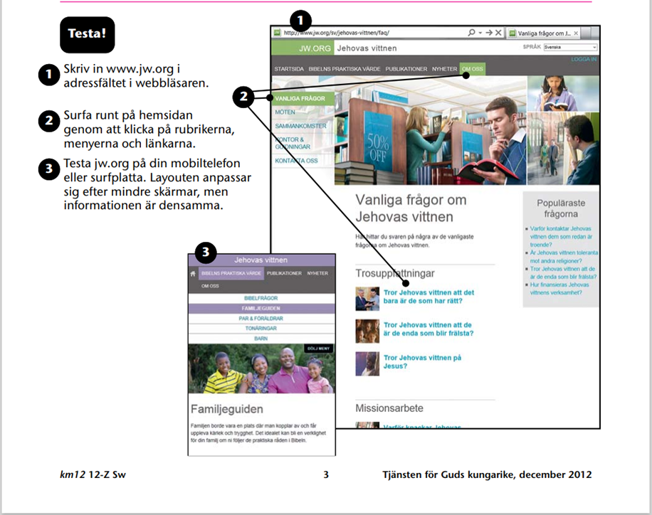 ”För att vi ska kunna fullgöra vår tjänst har hemsidorna watchtower.org, jw-media.org och jw.org slagits ihop till den nydesignade sajten jw.org.” – Tjänsten för Guds kungarike, december 2012, sid. 3 (eng. & sve.)
