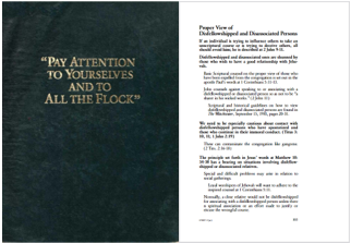 ”Normalt sett skulle en nära släkting inte uteslutas för att ha umgåtts med en utesluten person såvida det inte förekommer andligt umgänge eller en ansträngning för att rättfärdiga eller ursäkta handlingen.” – Ge akt på er själva och hela hjorden [1991], sid. 103 (eng.) (Utdraget är efter bästa förmåga direktöversatt)
