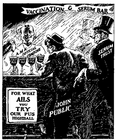 “Vaccination har aldrig förhindrat någonting och kommer aldrig att göra det, och är den mest barbariska praxisen… Vi lever i de sista dagarna; och djävulen förlorar långsamt sitt grepp, och gör en ansträngande ansträngning under tiden för att orsaka all skada han kan, och till hans förtjänst kan sådan ondska tillskrivas. … Använd era rättigheter som amerikanska medborgare för att för alltid avskaffa den djävulska praxisen med vaccinationer.” – Den Gyllene Tidsåldern [eng. The Golden Age], 12 oktober 1921, sid. 17 (eng.) (Direktöversatt)
