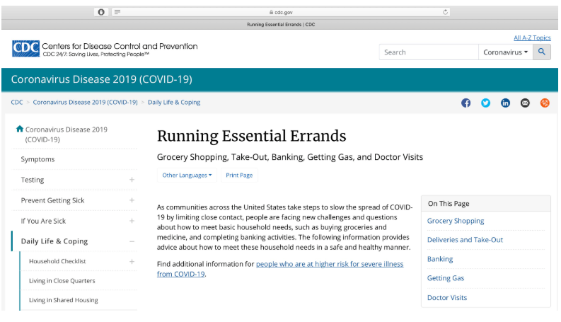 Eftersom ditt uppdrag kan kräva att du tillfälligt lämnar ditt hem för att utföra en viktig uppgift, vänligen gör det medan du följer de försiktighetsåtgärder som anges här. Se dessutom de allmänna principerna som beskrivs på: https://www.cdc.gov/coronavirus/2019-ncov/daily-life-coping/essential-goods-services.html.” (Direktöversatt)