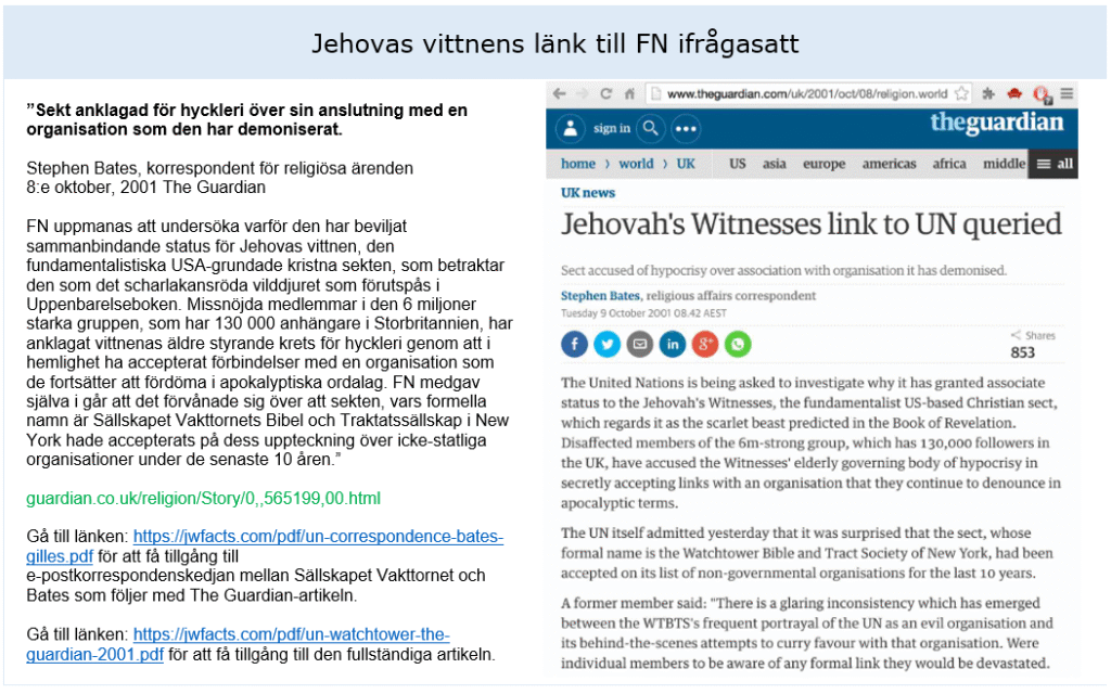 Stephen Bates artiklar i The Guardian för den 8 och 15 oktober ger en väsentligt felaktig bild av bakgrunden till att Jehovas vittnen registrerade sig hos FN och innehåller ett flertal faktafel.